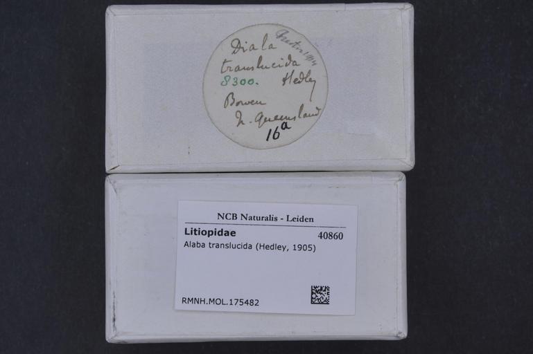Keywords: Naturalis Biodiversity Center - RMNH.MOL.175482 1 - Alaba translucida (Hedley, 1905) - Litiopidae - Mollusc shell.jpeg artwork Dimensions artwork Document type Litiopidae Alaba Individual count Infraspecific epithet Infraspecific rank Institution Naturalis Kind of unit artwork Kind of unit specimen shell Life stage Medium artwork Nomenclatural code Source institute Rijksmuseum van Natuurlijke Historie Leiden Scale the width of the text on the species/QR-code label is 38 mm Occurrence ID page Other fields Other versions artwork Permission license Naturalis donation CC-0 Mollusca Publication location Scientific name Alaba translucida Hedley 1905 Scientific name authorship Hedley 1905 Source url http //bioportal naturalis nl Specific epithet translucida State or province Subject keywords artwork Subject keywords publication Title artwork Title publication Type status Uploaded with GWToolset Naturalis_Biodiversity_Center_-_RMNH MOL 175482_1_-_Alaba_translucida_ Hedley _1905 _-_Litiopidae_-_Mollusc_shell http //medialib naturalis nl/file/id/RMNH MOL 175482_1/format/large Media donated by Naturalis Biodiversity Center Molluscs at Naturalis from the Rijksmuseum van Natuurlijke Historie Alaba translucida Alaba |