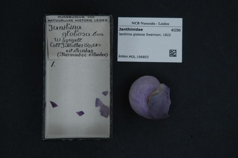 | Keywords: Naturalis Biodiversity Center - RMNH.MOL.196803 - Janthina globosa Swainson, 1822 - Janthinidae - Mollusc shell.jpeg artwork Dimensions artwork Document type Janthinidae Janthina Individual count Infraspecific epithet Infraspecific rank Institution Naturalis Kind of unit artwork Kind of unit specimen shell Life stage Medium artwork Nomenclatural code Source institute Rijksmuseum van Natuurlijke Historie Leiden Scale the width of the text on the species/QR-code label is 38 mm Occurrence ID page Other fields Other versions artwork Permission license Naturalis donation CC-0 Mollusca Publication location Scientific name Janthina globosa Swainson 1822 Scientific name authorship Swainson 1822 Source url http //bioportal naturalis nl Specific epithet globosa State or province Subject keywords artwork Subject keywords publication Title artwork Title publication Type status Uploaded with GWToolset Naturalis_Biodiversity_Center_-_RMNH MOL 196803_-_Janthina_globosa_Swainson _1822_-_Janthinidae_-_Mollusc_shell http //medialib naturalis nl/file/id/RMNH MOL 196803/format/large Media donated by Naturalis Biodiversity Center Molluscs at Naturalis from the Rijksmuseum van Natuurlijke Historie Janthina globosa |