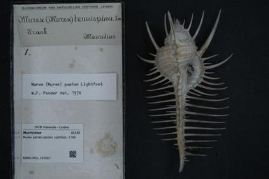 | Keywords: Naturalis Biodiversity Center - RMNH.MOL.197567 - Murex pecten pecten Lightfoot, 1786 - Muricidae - Mollusc shell.jpeg artwork Dimensions artwork Document type Muricidae subfamily Muricinae Murex Individual count Infraspecific epithet pecten Infraspecific rank Institution Naturalis Kind of unit artwork Kind of unit specimen shell Life stage Medium artwork Nomenclatural code Source institute Rijksmuseum van Natuurlijke Historie Leiden Scale the width of the text on the species/QR-code label is 38 mm Occurrence ID page Neogastropoda Other fields Other versions artwork Permission license Naturalis donation CC-0 Mollusca Publication location Scientific name Murex pecten pecten Lightfoot 1786 Scientific name authorship Lightfoot 1786 Source url http //bioportal naturalis nl Specific epithet pecten State or province Subject keywords artwork Subject keywords publication Title artwork Title publication Type status Uploaded with GWToolset Naturalis_Biodiversity_Center_-_RMNH MOL 197567_-_Murex_pecten_pecten_Lightfoot _1786_-_Muricidae_-_Mollusc_shell http //medialib naturalis nl/file/id/RMNH MOL 197567/format/large Media donated by Naturalis Biodiversity Center Molluscs at Naturalis from the Rijksmuseum van Natuurlijke Historie Murex pecten |