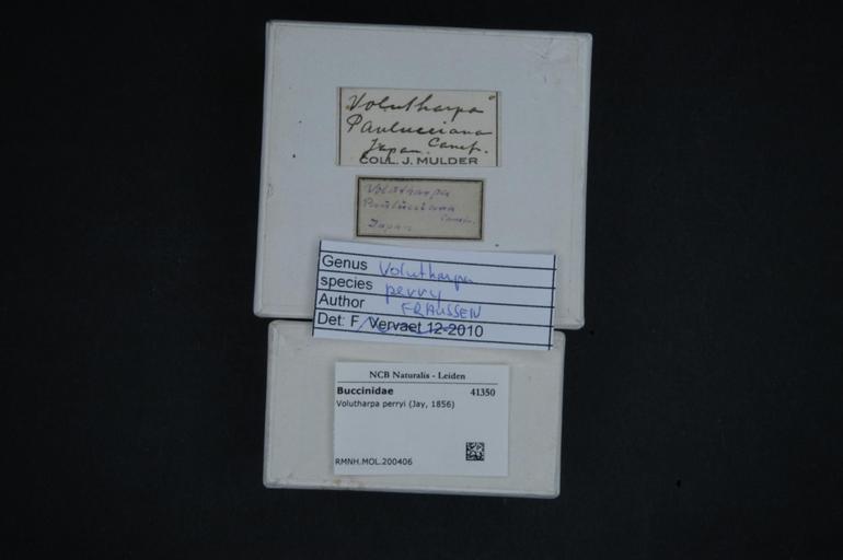 Keywords: Naturalis Biodiversity Center - RMNH.MOL.200406 1 - Volutharpa perryi (Jay, 1856) - Buccinidae - Mollusc shell.jpeg artwork Dimensions artwork Document type Buccinidae subfamily Buccininae Volutharpa Individual count Infraspecific epithet Infraspecific rank Institution Naturalis Kind of unit artwork Kind of unit specimen shell Life stage Medium artwork Nomenclatural code Source institute Rijksmuseum van Natuurlijke Historie Leiden Scale the width of the text on the species/QR-code label is 38 mm Occurrence ID page Other fields Other versions artwork Permission license Naturalis donation CC-0 Mollusca Publication location Scientific name Volutharpa perryi Jay 1856 Scientific name authorship Jay 1856 Source url http //bioportal naturalis nl Specific epithet perryi State or province Subject keywords artwork Subject keywords publication Title artwork Title publication Type status Uploaded with GWToolset Naturalis_Biodiversity_Center_-_RMNH MOL 200406_1_-_Volutharpa_perryi_ Jay _1856 _-_Buccinidae_-_Mollusc_shell http //medialib naturalis nl/file/id/RMNH MOL 200406_1/format/large Media donated by Naturalis Biodiversity Center Molluscs at Naturalis from the Rijksmuseum van Natuurlijke Historie Volutharpa perryi Volutharpa |