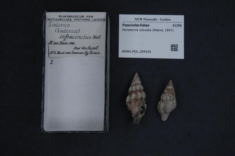 | Keywords: Naturalis Biodiversity Center - RMNH.MOL.209428 - Peristernia ustulata (Reeve, 1847) - Fasciolariidae - Mollusc shell.jpeg artwork Dimensions artwork Document type Fasciolariidae subfamily Peristerniinae Peristernia Individual count Infraspecific epithet Infraspecific rank Institution Naturalis Kind of unit artwork Kind of unit specimen shell Life stage Medium artwork Nomenclatural code Source institute Rijksmuseum van Natuurlijke Historie Leiden Scale the width of the text on the species/QR-code label is 38 mm Occurrence ID page Other fields Other versions artwork Permission license Naturalis donation CC-0 Mollusca Publication location Scientific name Peristernia ustulata Reeve 1847 Scientific name authorship Reeve 1847 Source url http //bioportal naturalis nl Specific epithet ustulata State or province Subject keywords artwork Subject keywords publication Title artwork Title publication Type status Uploaded with GWToolset Naturalis_Biodiversity_Center_-_RMNH MOL 209428_-_Peristernia_ustulata_ Reeve _1847 _-_Fasciolariidae_-_Mollusc_shell http //medialib naturalis nl/file/id/RMNH MOL 209428/format/large Media donated by Naturalis Biodiversity Center Molluscs at Naturalis from the Rijksmuseum van Natuurlijke Historie Peristernia ustulata Peristernia |