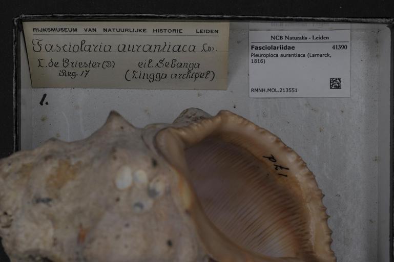 | Keywords: Naturalis Biodiversity Center - RMNH.MOL.213551 - Pleuroploca aurantiaca (Lamarck, 1816) - Fasciolariidae - Mollusc shell.jpeg artwork Dimensions artwork Document type Fasciolariidae subfamily Fasciolariinae Pleuroploca Individual count Infraspecific epithet Infraspecific rank Institution Naturalis Kind of unit artwork Kind of unit specimen shell Life stage Medium artwork Nomenclatural code Source institute Rijksmuseum van Natuurlijke Historie Leiden Scale the width of the text on the species/QR-code label is 38 mm Occurrence ID page Other fields Other versions artwork Permission license Naturalis donation CC-0 Mollusca Publication location Scientific name Pleuroploca aurantiaca Lamarck 1816 Scientific name authorship Lamarck 1816 Source url http //bioportal naturalis nl Specific epithet aurantiaca State or province Subject keywords artwork Subject keywords publication Title artwork Title publication Type status Uploaded with GWToolset Naturalis_Biodiversity_Center_-_RMNH MOL 213551_-_Pleuroploca_aurantiaca_ Lamarck _1816 _-_Fasciolariidae_-_Mollusc_shell http //medialib naturalis nl/file/id/RMNH MOL 213551/format/large Media donated by Naturalis Biodiversity Center Molluscs at Naturalis from the Rijksmuseum van Natuurlijke Historie Pleuroploca aurantiaca Pleuroploca |