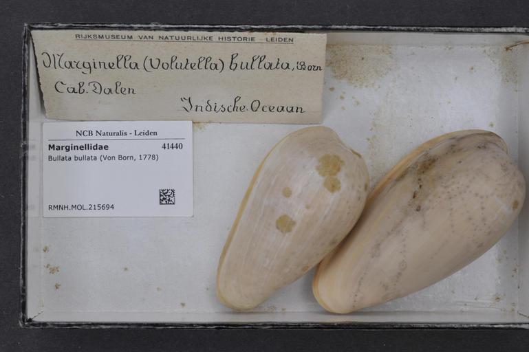 Keywords: Naturalis Biodiversity Center - RMNH.MOL.215694 - Bullata bullata (Von Born, 1778) - Marginellidae - Mollusc shell.jpeg artwork Dimensions artwork Document type Marginellidae Bullata Individual count Infraspecific epithet Infraspecific rank Institution Naturalis Kind of unit artwork Kind of unit specimen shell Life stage Medium artwork Nomenclatural code Source institute Rijksmuseum van Natuurlijke Historie Leiden Scale the width of the text on the species/QR-code label is 38 mm Occurrence ID page Neogastropoda Other fields Other versions artwork Permission license Naturalis donation CC-0 Mollusca Publication location Scientific name Bullata bullata Von Born 1778 Scientific name authorship Von Born 1778 Source url http //bioportal naturalis nl Specific epithet bullata State or province Subject keywords artwork Subject keywords publication Title artwork Title publication Type status Uploaded with GWToolset Naturalis_Biodiversity_Center_-_RMNH MOL 215694_-_Bullata_bullata_ Von_Born _1778 _-_Marginellidae_-_Mollusc_shell http //medialib naturalis nl/file/id/RMNH MOL 215694/format/large Media donated by Naturalis Biodiversity Center Molluscs at Naturalis from the Rijksmuseum van Natuurlijke Historie Bullata bullata Bullata |