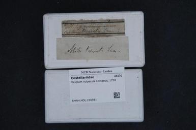 Keywords: Naturalis Biodiversity Center - RMNH.MOL.216981 1 - Vexillum vulpecula (Linnaeus, 1758) - Costellariidae - Mollusc shell.jpeg artwork Dimensions artwork Document type Costellariidae Vexillum Individual count Infraspecific epithet Infraspecific rank Institution Naturalis Kind of unit artwork Kind of unit specimen shell Life stage Medium artwork Nomenclatural code Source institute Rijksmuseum van Natuurlijke Historie Leiden Scale the width of the text on the species/QR-code label is 38 mm Occurrence ID page Neogastropoda Other fields Other versions artwork Permission license Naturalis donation CC-0 Mollusca Publication location Scientific name Vexillum vulpecula Linnaeus 1758 Scientific name authorship Linnaeus 1758 Source url http //bioportal naturalis nl Specific epithet vulpecula State or province Subject keywords artwork Subject keywords publication Title artwork Title publication Type status Uploaded with GWToolset Naturalis_Biodiversity_Center_-_RMNH MOL 216981_1_-_Vexillum_vulpecula_ Linnaeus _1758 _-_Costellariidae_-_Mollusc_shell http //medialib naturalis nl/file/id/RMNH MOL 216981_1/format/large Molluscs at Naturalis from the Rijksmuseum van Natuurlijke Historie Media donated by Naturalis Biodiversity Center Vexillum vulpecula Vexillum |