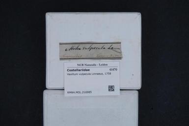 Keywords: Naturalis Biodiversity Center - RMNH.MOL.216985 1 - Vexillum vulpecula (Linnaeus, 1758) - Costellariidae - Mollusc shell.jpeg artwork Dimensions artwork Document type Costellariidae Vexillum Individual count Infraspecific epithet Infraspecific rank Institution Naturalis Kind of unit artwork Kind of unit specimen shell Life stage Medium artwork Nomenclatural code Source institute Rijksmuseum van Natuurlijke Historie Leiden Scale the width of the text on the species/QR-code label is 38 mm Occurrence ID page Neogastropoda Other fields Other versions artwork Permission license Naturalis donation CC-0 Mollusca Publication location Scientific name Vexillum vulpecula Linnaeus 1758 Scientific name authorship Linnaeus 1758 Source url http //bioportal naturalis nl Specific epithet vulpecula State or province Subject keywords artwork Subject keywords publication Title artwork Title publication Type status Uploaded with GWToolset Naturalis_Biodiversity_Center_-_RMNH MOL 216985_1_-_Vexillum_vulpecula_ Linnaeus _1758 _-_Costellariidae_-_Mollusc_shell http //medialib naturalis nl/file/id/RMNH MOL 216985_1/format/large Molluscs at Naturalis from the Rijksmuseum van Natuurlijke Historie Media donated by Naturalis Biodiversity Center Vexillum vulpecula Vexillum |