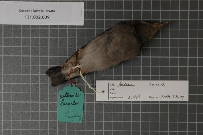 | Keywords: Naturalis Biodiversity Center - RMNH.AVES.123407 2 - Coracina larvata larvata (Muller, 1843) - Campephagidae - bird skin specimen.jpeg artwork Dimensions artwork Document type Campephagidae Coracina Individual count 1 Infraspecific epithet larvata Infraspecific rank Institution Naturalis Kind of unit artwork Kind of unit specimen skin Life stage juvenile Indonesia West Java Gedeh Medium artwork Nomenclatural code Age remark juv nestling Occurrence ID page Other fields Other versions artwork Permission license Naturalis donation CC-0 Publication location Scientific name Coracina larvata larvata Muller 1843 Scientific name authorship Muller 1843 Source url http //bioportal naturalis nl Specific epithet larvata State or province West Java Subject keywords artwork Subject keywords publication Title artwork Title publication Type status Uploaded with GWToolset Naturalis_Biodiversity_Center_-_RMNH AVES 123407_2_-_Coracina_larvata_larvata_ Muller _1843 _-_Campephagidae_-_bird_skin_specimen http //medialib naturalis nl/file/id/RMNH AVES 123407_2/format/large Media donated by Naturalis Biodiversity Center Songbird specimens at Naturalis Biodiversity Center Coracina larvata larvata |