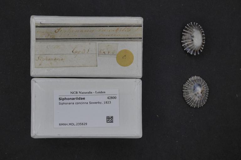 | Keywords: Naturalis Biodiversity Center - RMNH.MOL.235829 1 - Siphonaria concinna Sowerby, 1823 - Siphonariidae - Mollusc shell.jpeg artwork Dimensions artwork Document type Siphonariidae Siphonaria Individual count Infraspecific epithet Infraspecific rank Institution Naturalis Kind of unit artwork Kind of unit specimen shell Life stage Medium artwork Nomenclatural code Source institute Rijksmuseum van Natuurlijke Historie Leiden Scale the width of the text on the species/QR-code label is 38 mm Occurrence ID page Other fields Other versions artwork Permission license Naturalis donation CC-0 Mollusca Publication location Scientific name Siphonaria concinna Sowerby 1823 Scientific name authorship Sowerby 1823 Source url http //bioportal naturalis nl Specific epithet concinna State or province Subject keywords artwork Subject keywords publication Title artwork Title publication Type status Uploaded with GWToolset Naturalis_Biodiversity_Center_-_RMNH MOL 235829_1_-_Siphonaria_concinna_Sowerby _1823_-_Siphonariidae_-_Mollusc_shell http //medialib naturalis nl/file/id/RMNH MOL 235829_1/format/large Molluscs at Naturalis from the Rijksmuseum van Natuurlijke Historie Media donated by Naturalis Biodiversity Center Siphonaria concinna Siphonaria |