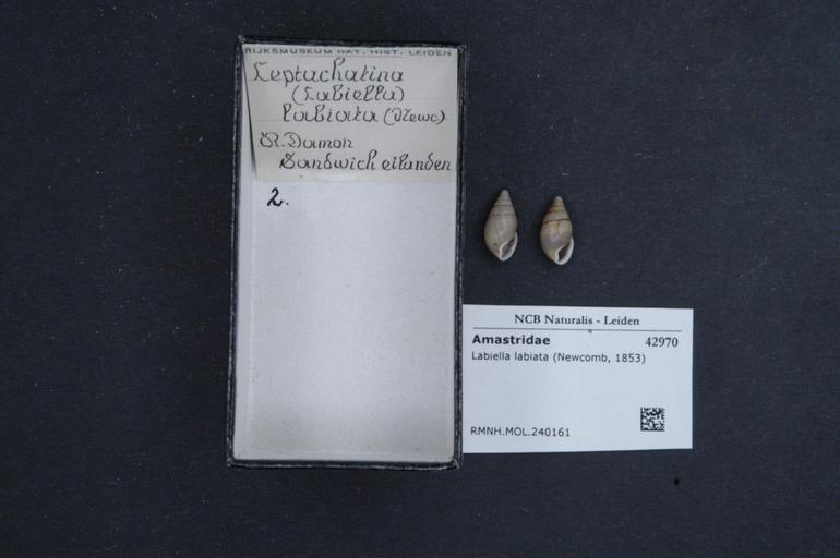 | Keywords: Naturalis Biodiversity Center - RMNH.MOL.240161 - Labiella labiata (Newcomb, 1853) - Amastridae - Mollusc shell.jpeg artwork Dimensions artwork Document type Amastridae Labiella Individual count Infraspecific epithet Infraspecific rank Institution Naturalis Kind of unit artwork Kind of unit specimen shell Life stage Medium artwork Nomenclatural code Source institute Rijksmuseum van Natuurlijke Historie Leiden Scale the width of the text on the species/QR-code label is 38 mm Occurrence ID page Other fields Other versions artwork Permission license Naturalis donation CC-0 Mollusca Publication location Scientific name Labiella labiata Newcomb 1853 Scientific name authorship Newcomb 1853 Source url http //bioportal naturalis nl Specific epithet labiata State or province Subject keywords artwork Subject keywords publication Title artwork Title publication Type status Uploaded with GWToolset Naturalis_Biodiversity_Center_-_RMNH MOL 240161_-_Labiella_labiata_ Newcomb _1853 _-_Amastridae_-_Mollusc_shell http //medialib naturalis nl/file/id/RMNH MOL 240161/format/large Molluscs at Naturalis from the Rijksmuseum van Natuurlijke Historie Media donated by Naturalis Biodiversity Center Labiella labiata Labiella |