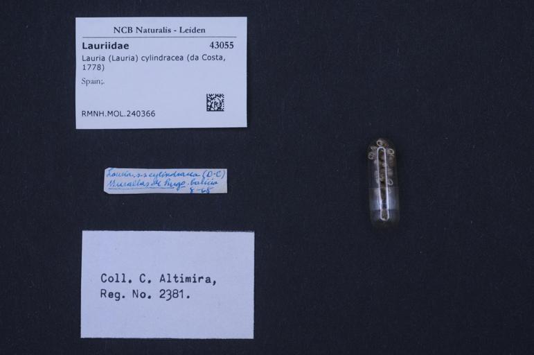 | Keywords: Naturalis Biodiversity Center - RMNH.MOL.240366 - Lauria (Lauria) cylindracea (Da Costa, 1778) - Lauriidae - Mollusc shell.jpeg artwork Dimensions artwork Document type Lauriidae Lauria Individual count Infraspecific epithet Infraspecific rank Institution Naturalis Kind of unit artwork Kind of unit specimen shell Life stage Spain Medium artwork Nomenclatural code Source institute Rijksmuseum van Natuurlijke Historie Leiden Scale the width of the text on the species/QR-code label is 38 mm Occurrence ID page Other fields Other versions artwork Permission license Naturalis donation CC-0 Mollusca Publication location Scientific name Lauria Lauria cylindracea Da Costa 1778 Scientific name authorship Da Costa 1778 Source url http //bioportal naturalis nl Specific epithet cylindracea State or province Subject keywords artwork Subject keywords publication Title artwork Title publication Type status Uploaded with GWToolset Naturalis_Biodiversity_Center_-_RMNH MOL 240366_-_Lauria_ Lauria _cylindracea_ Da_Costa _1778 _-_Lauriidae_-_Mollusc_shell http //medialib naturalis nl/file/id/RMNH MOL 240366/format/large Molluscs at Naturalis from the Rijksmuseum van Natuurlijke Historie Media donated by Naturalis Biodiversity Center Lauria cylindracea Lauria |