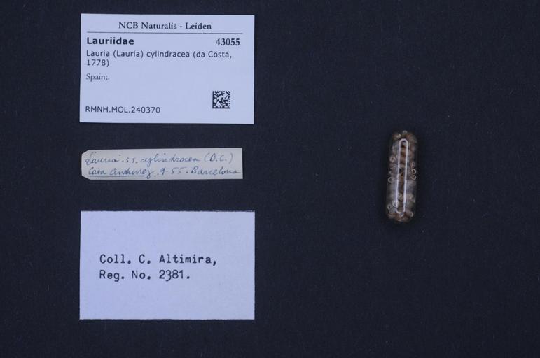 | Keywords: Naturalis Biodiversity Center - RMNH.MOL.240370 - Lauria (Lauria) cylindracea (Da Costa, 1778) - Lauriidae - Mollusc shell.jpeg artwork Dimensions artwork Document type Lauriidae Lauria Individual count Infraspecific epithet Infraspecific rank Institution Naturalis Kind of unit artwork Kind of unit specimen shell Life stage Spain Medium artwork Nomenclatural code Source institute Rijksmuseum van Natuurlijke Historie Leiden Scale the width of the text on the species/QR-code label is 38 mm Occurrence ID page Other fields Other versions artwork Permission license Naturalis donation CC-0 Mollusca Publication location Scientific name Lauria Lauria cylindracea Da Costa 1778 Scientific name authorship Da Costa 1778 Source url http //bioportal naturalis nl Specific epithet cylindracea State or province Subject keywords artwork Subject keywords publication Title artwork Title publication Type status Uploaded with GWToolset Naturalis_Biodiversity_Center_-_RMNH MOL 240370_-_Lauria_ Lauria _cylindracea_ Da_Costa _1778 _-_Lauriidae_-_Mollusc_shell http //medialib naturalis nl/file/id/RMNH MOL 240370/format/large Molluscs at Naturalis from the Rijksmuseum van Natuurlijke Historie Media donated by Naturalis Biodiversity Center Lauria cylindracea Lauria |