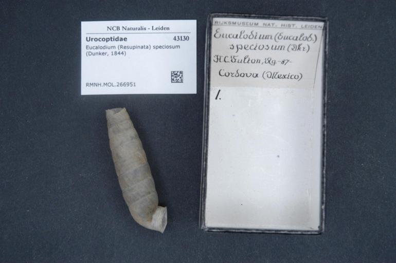 | Keywords: Naturalis Biodiversity Center - RMNH.MOL.266951 - Eucalodium (Resupinata) speciosum (Dunker, 1844) - Urocoptidae - Mollusc shell.jpeg artwork Dimensions artwork Document type Urocoptidae subfamily Eucalodiinae Eucalodium Individual count Infraspecific epithet Infraspecific rank Institution Naturalis Kind of unit artwork Kind of unit specimen shell Life stage Medium artwork Nomenclatural code Source institute Rijksmuseum van Natuurlijke Historie Leiden Scale the width of the text on the species/QR-code label is 38 mm Occurrence ID page Other fields Other versions artwork Permission license Naturalis donation CC-0 Mollusca Publication location Scientific name Eucalodium Resupinata speciosum Dunker 1844 Scientific name authorship Dunker 1844 Source url http //bioportal naturalis nl Specific epithet speciosum State or province Subject keywords artwork Subject keywords publication Title artwork Title publication Type status Uploaded with GWToolset Naturalis_Biodiversity_Center_-_RMNH MOL 266951_-_Eucalodium_ Resupinata _speciosum_ Dunker _1844 _-_Urocoptidae_-_Mollusc_shell http //medialib naturalis nl/file/id/RMNH MOL 266951/format/large Molluscs at Naturalis from the Rijksmuseum van Natuurlijke Historie Media donated by Naturalis Biodiversity Center Eucalodium speciosum Eucalodium |