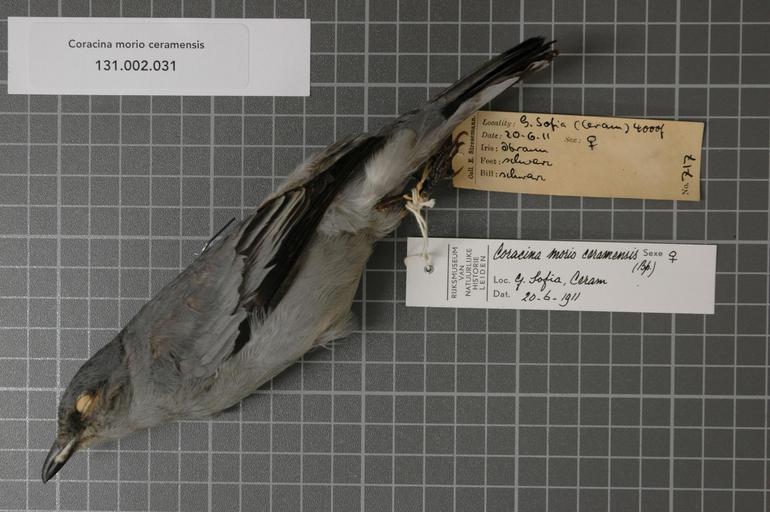 | Keywords: Naturalis Biodiversity Center - RMNH.AVES.123728 1 - Coracina morio ceramensis (Bonaparte, 1850) - Campephagidae - bird skin specimen.jpeg artwork Dimensions artwork Document type Campephagidae Coracina Individual count 1 Infraspecific epithet ceramensis Infraspecific rank Institution Naturalis Kind of unit artwork Kind of unit specimen skin Life stage Indonesia Ceram G Sofia Medium artwork Nomenclatural code Occurrence ID page Other fields Other versions artwork Permission license Naturalis donation CC-0 Publication location Scientific name Coracina morio ceramensis Bonaparte 1850 Scientific name authorship Bonaparte 1850 female Source url http //bioportal naturalis nl Specific epithet morio State or province Subject keywords artwork Subject keywords publication Title artwork Title publication Type status Uploaded with GWToolset Naturalis_Biodiversity_Center_-_RMNH AVES 123728_1_-_Coracina_morio_ceramensis_ Bonaparte _1850 _-_Campephagidae_-_bird_skin_specimen http //medialib naturalis nl/file/id/RMNH AVES 123728_1/format/large Media donated by Naturalis Biodiversity Center Songbird specimens at Naturalis Biodiversity Center Coracina morio ceramensis |