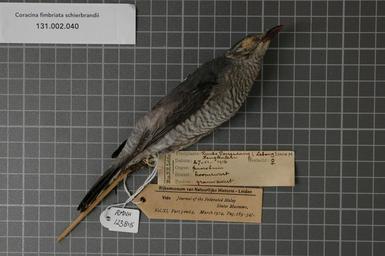 | Keywords: Naturalis Biodiversity Center - RMNH.AVES.123815 1 - Coracina fimbriata schierbrandii (Pelzeln, 1865) - Campephagidae - bird skin specimen.jpeg artwork Dimensions artwork Document type Campephagidae Coracina Individual count 1 Infraspecific epithet schierbrandii Infraspecific rank Institution Naturalis Kind of unit artwork Kind of unit specimen skin Life stage Bengkulen Rimbo Pengadang Lebong Medium artwork Nomenclatural code Occurrence ID page Other fields Other versions artwork Permission license Naturalis donation CC-0 Publication location Scientific name Coracina fimbriata schierbrandii Pelzeln 1865 Scientific name authorship Pelzeln 1865 female Source url http //bioportal naturalis nl Specific epithet fimbriata State or province Bengkulen Subject keywords artwork Subject keywords publication Title artwork Title publication Type status Uploaded with GWToolset Naturalis_Biodiversity_Center_-_RMNH AVES 123815_1_-_Coracina_fimbriata_schierbrandii_ Pelzeln _1865 _-_Campephagidae_-_bird_skin_specimen http //medialib naturalis nl/file/id/RMNH AVES 123815_1/format/large Media donated by Naturalis Biodiversity Center Songbird specimens at Naturalis Biodiversity Center Coracina fimbriata schierbrandii |