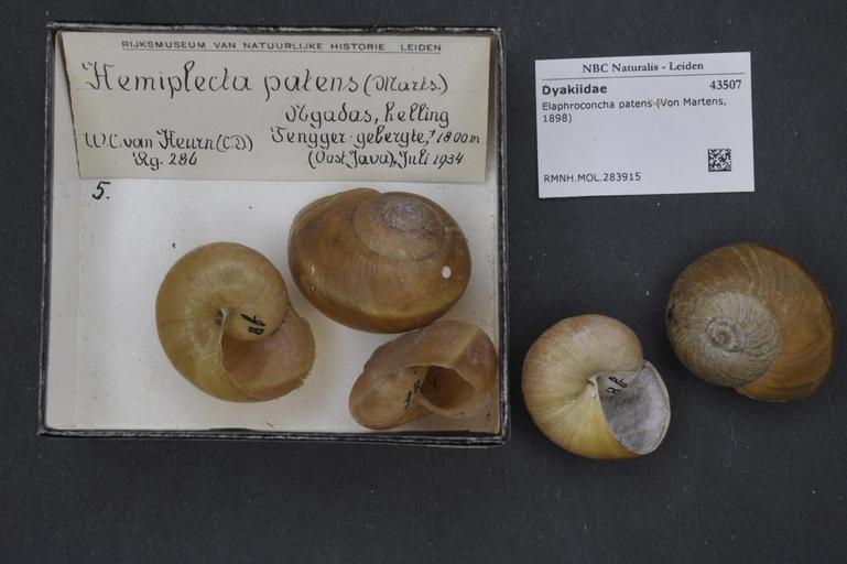 | Keywords: Naturalis Biodiversity Center - RMNH.MOL.283915 - Elaphroconcha patens (Von Martens, 1898) - Dyakiidae - Mollusc shell.jpeg artwork Dimensions artwork Document type Dyakiidae Elaphroconcha Individual count Infraspecific epithet Infraspecific rank Institution Naturalis Kind of unit artwork Kind of unit specimen shell Life stage Medium artwork Nomenclatural code Source institute Rijksmuseum van Natuurlijke Historie Leiden Scale the width of the text on the species/QR-code label is 38 mm Occurrence ID page Other fields Other versions artwork Permission license Naturalis donation CC-0 Mollusca Publication location Scientific name Elaphroconcha patens Von Martens 1898 Scientific name authorship Von Martens 1898 Source url http //bioportal naturalis nl Specific epithet patens State or province Subject keywords artwork Subject keywords publication Title artwork Title publication Type status Uploaded with GWToolset Naturalis_Biodiversity_Center_-_RMNH MOL 283915_-_Elaphroconcha_patens_ Von_Martens _1898 _-_Dyakiidae_-_Mollusc_shell http //medialib naturalis nl/file/id/RMNH MOL 283915/format/large Molluscs at Naturalis from the Rijksmuseum van Natuurlijke Historie Media donated by Naturalis Biodiversity Center Elaphroconcha patens |