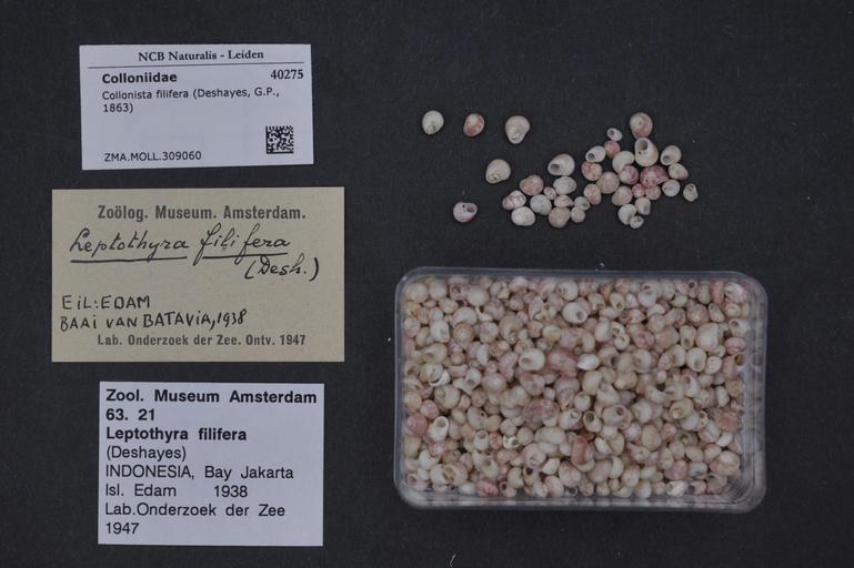Keywords: Naturalis Biodiversity Center - ZMA.MOLL.309060 - Collonista filifera (Deshayes, G.P., 1863) - Colloniidae - Mollusc shell.jpeg artwork Dimensions artwork Document type Colloniidae Collonista Individual count Infraspecific epithet Infraspecific rank Institution Naturalis Kind of unit artwork Kind of unit specimen shell Life stage Medium artwork Nomenclatural code Source institute Zoölogisch Museum Amsterdam Scale the width of the text on the species/QR-code label is 38 mm Occurrence ID page Other fields Other versions artwork Permission license Naturalis donation CC-0 Mollusca Publication location Scientific name Collonista filifera Deshayes G P 1863 Scientific name authorship Deshayes 1863 Source url http //bioportal naturalis nl Specific epithet filifera State or province Subject keywords artwork Subject keywords publication Title artwork Title publication Type status Uploaded with GWToolset Naturalis_Biodiversity_Center_-_ZMA MOLL 309060_-_Collonista_filifera_ Deshayes _G P _1863 _-_Colloniidae_-_Mollusc_shell http //medialib naturalis nl/file/id/ZMA MOLL 309060/format/large Media donated by Naturalis Biodiversity Center Molluscs at Naturalis from the Zoölogisch Museum Amsterdam Collonista filifera Collonista |