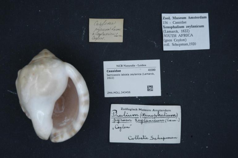 | Keywords: Naturalis Biodiversity Center - ZMA.MOLL.343456 - Semicassis labiata zeylanica (Lamarck, 1822) - Cassidae - Mollusc shell.jpeg artwork Dimensions artwork Document type Cassidae subfamily Phaliinae Semicassis Individual count Infraspecific epithet zeylanica Infraspecific rank Institution Naturalis Kind of unit artwork Kind of unit specimen shell Life stage Medium artwork Nomenclatural code Source institute Zoölogisch Museum Amsterdam Scale the width of the text on the species/QR-code label is 38 mm Occurrence ID page Other fields Other versions artwork Permission license Naturalis donation CC-0 Mollusca Publication location Scientific name Semicassis labiata zeylanica Lamarck 1822 Scientific name authorship Lamarck 1822 Source url http //bioportal naturalis nl Specific epithet labiata State or province Subject keywords artwork Subject keywords publication Title artwork Title publication Type status Uploaded with GWToolset Naturalis_Biodiversity_Center_-_ZMA MOLL 343456_-_Semicassis_labiata_zeylanica_ Lamarck _1822 _-_Cassidae_-_Mollusc_shell http //medialib naturalis nl/file/id/ZMA MOLL 343456/format/large Media donated by Naturalis Biodiversity Center Molluscs at Naturalis from the Zoölogisch Museum Amsterdam Semicassis labiata Semicassis |