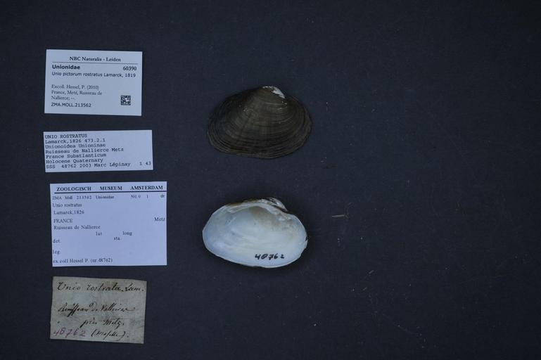 Keywords: Naturalis Biodiversity Center - ZMA.MOLL.213562 - Unio pictorum rostratus Lamarck, 1819 - Unionidae - Mollusc shell.jpeg artwork Dimensions artwork Document type Unionidae subfamily Unioninae Unio Individual count Infraspecific epithet rostratus Infraspecific rank Institution Naturalis Kind of unit artwork Kind of unit specimen shell Life stage France Metz Ruisseau de Nallierce Medium artwork Nomenclatural code Scale the width of the text on the species/QR-code label is 38 mm Occurrence ID page Other fields Other versions artwork Permission license Naturalis donation CC-0 Mollusca Publication location Scientific name Unio pictorum rostratus Lamarck 1819 Scientific name authorship Lamarck 1819 Source url http //bioportal naturalis nl Specific epithet pictorum State or province Metz Subject keywords artwork Subject keywords publication Title artwork Title publication Type status Uploaded with GWToolset Naturalis_Biodiversity_Center_-_ZMA MOLL 213562_-_Unio_pictorum_rostratus_Lamarck _1819_-_Unionidae_-_Mollusc_shell http //medialib naturalis nl/file/id/ZMA MOLL 213562/format/large Media donated by Naturalis Biodiversity Center Molluscs at Naturalis from the Zoölogisch Museum Amsterdam Unio pictorum Unio |