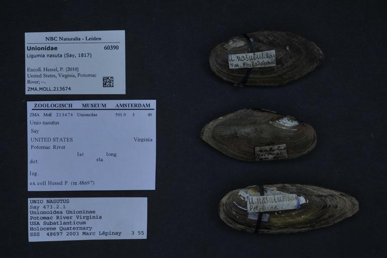 | Keywords: Naturalis Biodiversity Center - ZMA.MOLL.213674 - Ligumia nasuta (Say, 1817) - Unionidae - Mollusc shell.jpeg artwork Dimensions artwork Document type Unionidae subfamily Ambleminae Ligumia Individual count Infraspecific epithet Infraspecific rank Institution Naturalis Kind of unit artwork Kind of unit specimen shell Life stage United States Virginia Potomac River Medium artwork Nomenclatural code Scale the width of the text on the species/QR-code label is 38 mm Occurrence ID page Other fields Other versions artwork Permission license Naturalis donation CC-0 Mollusca Publication location Scientific name Ligumia nasuta Say 1817 Scientific name authorship Say 1817 Source url http //bioportal naturalis nl Specific epithet nasuta State or province Virginia Subject keywords artwork Subject keywords publication Title artwork Title publication Type status Uploaded with GWToolset Naturalis_Biodiversity_Center_-_ZMA MOLL 213674_-_Ligumia_nasuta_ Say _1817 _-_Unionidae_-_Mollusc_shell http //medialib naturalis nl/file/id/ZMA MOLL 213674/format/large Media donated by Naturalis Biodiversity Center Molluscs at Naturalis from the Zoölogisch Museum Amsterdam Ligumia nasuta Ligumia |
