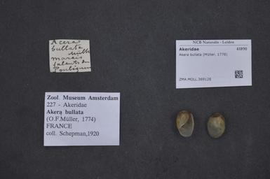 Keywords: Naturalis Biodiversity Center - ZMA.MOLL.369128 - Akera bullata (Müller, 1776) - Akeridae - Mollusc shell.jpeg artwork Dimensions artwork Document type Akeridae Akera Individual count Infraspecific epithet Infraspecific rank Institution Naturalis Kind of unit artwork Kind of unit specimen shell Life stage Medium artwork Nomenclatural code Source institute Zoölogisch Museum Amsterdam Scale the width of the text on the species/QR-code label is 38 mm Occurrence ID page Other fields Other versions artwork Permission license Naturalis donation CC-0 Mollusca Publication location Scientific name Akera bullata Müller 1776 Scientific name authorship Müller 1776 Source url http //bioportal naturalis nl Specific epithet bullata State or province Subject keywords artwork Subject keywords publication Title artwork Title publication Type status Uploaded with GWToolset Naturalis_Biodiversity_Center_-_ZMA MOLL 369128_-_Akera_bullata_ Müller _1776 _-_Akeridae_-_Mollusc_shell http //medialib naturalis nl/file/id/ZMA MOLL 369128/format/large Media donated by Naturalis Biodiversity Center Molluscs at Naturalis from the Zoölogisch Museum Amsterdam Akera bullata Akera |