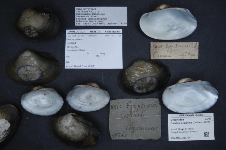 Keywords: Naturalis Biodiversity Center - ZMA.MOLL.213714 - Coelatura aegyptiaca (Cailliaud, 1827) - Unionidae - Mollusc shell.jpeg artwork Dimensions artwork Document type Unionidae Coelatura Individual count Infraspecific epithet Infraspecific rank Institution Naturalis Kind of unit artwork Kind of unit specimen shell Life stage Senegal Casamance River Medium artwork Nomenclatural code Scale the width of the text on the species/QR-code label is 38 mm Occurrence ID page Other fields Other versions artwork Permission license Naturalis donation CC-0 Mollusca Publication location Scientific name Coelatura aegyptiaca Cailliaud 1827 Scientific name authorship Cailliaud 1827 Source url http //bioportal naturalis nl Specific epithet aegyptiaca State or province Subject keywords artwork Subject keywords publication Title artwork Title publication Type status Uploaded with GWToolset Naturalis_Biodiversity_Center_-_ZMA MOLL 213714_-_Coelatura_aegyptiaca_ Cailliaud _1827 _-_Unionidae_-_Mollusc_shell http //medialib naturalis nl/file/id/ZMA MOLL 213714/format/large Media donated by Naturalis Biodiversity Center Molluscs at Naturalis from the Zoölogisch Museum Amsterdam Coelatura aegyptiaca Coelatura |