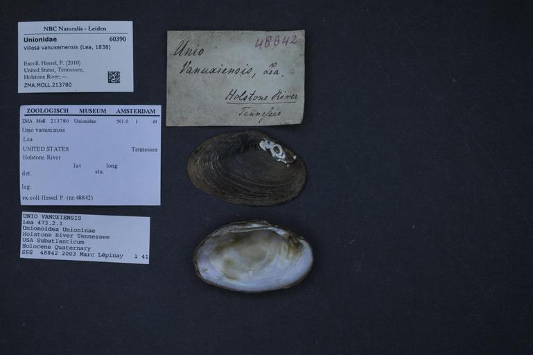 Keywords: Naturalis Biodiversity Center - ZMA.MOLL.213780 - Villosa vanuxemensis (Lea, 1838) - Unionidae - Mollusc shell.jpeg artwork Dimensions artwork Document type Unionidae subfamily Ambleminae Villosa Individual count Infraspecific epithet Infraspecific rank Institution Naturalis Kind of unit artwork Kind of unit specimen shell Life stage United States Tennessee Holstone River Medium artwork Nomenclatural code Scale the width of the text on the species/QR-code label is 38 mm Occurrence ID page Other fields Other versions artwork Permission license Naturalis donation CC-0 Mollusca Publication location Scientific name Villosa vanuxemensis Lea 1838 Scientific name authorship Lea 1838 Source url http //bioportal naturalis nl Specific epithet vanuxemensis State or province Tennessee Subject keywords artwork Subject keywords publication Title artwork Title publication Type status Uploaded with GWToolset Naturalis_Biodiversity_Center_-_ZMA MOLL 213780_-_Villosa_vanuxemensis_ Lea _1838 _-_Unionidae_-_Mollusc_shell http //medialib naturalis nl/file/id/ZMA MOLL 213780/format/large Media donated by Naturalis Biodiversity Center Molluscs at Naturalis from the Zoölogisch Museum Amsterdam Villosa vanuxemensis Villosa |