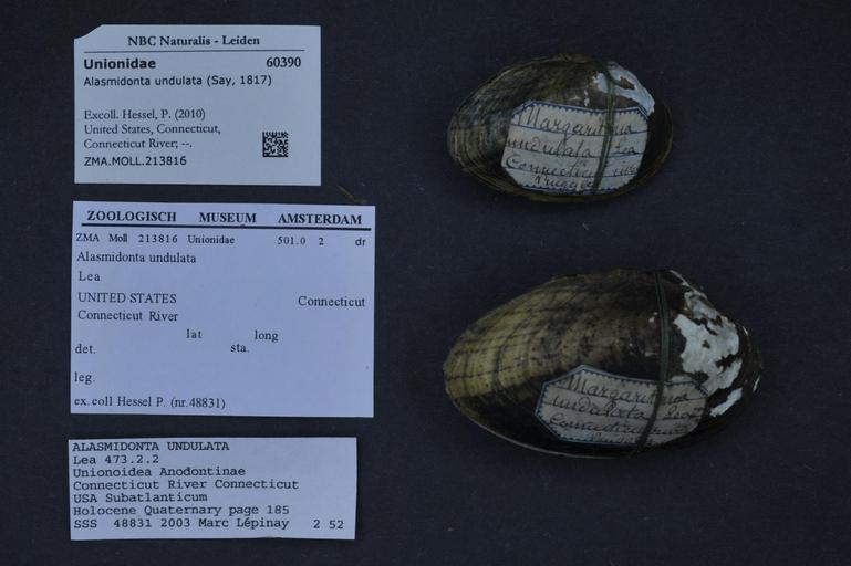 Keywords: Naturalis Biodiversity Center - ZMA.MOLL.213816 - Alasmidonta undulata (Say, 1817) - Unionidae - Mollusc shell.jpeg artwork Dimensions artwork Document type Unionidae subfamily Anodontinae Alasmidonta Individual count Infraspecific epithet Infraspecific rank Institution Naturalis Kind of unit artwork Kind of unit specimen shell Life stage United States Connecticut Connecticut River Medium artwork Nomenclatural code Scale the width of the text on the species/QR-code label is 38 mm Occurrence ID page Other fields Other versions artwork Permission license Naturalis donation CC-0 Mollusca Publication location Scientific name Alasmidonta undulata Say 1817 Scientific name authorship Say 1817 Source url http //bioportal naturalis nl Specific epithet undulata State or province Connecticut Subject keywords artwork Subject keywords publication Title artwork Title publication Type status Uploaded with GWToolset Naturalis_Biodiversity_Center_-_ZMA MOLL 213816_-_Alasmidonta_undulata_ Say _1817 _-_Unionidae_-_Mollusc_shell http //medialib naturalis nl/file/id/ZMA MOLL 213816/format/large Media donated by Naturalis Biodiversity Center Molluscs at Naturalis from the Zoölogisch Museum Amsterdam Alasmidonta undulata |