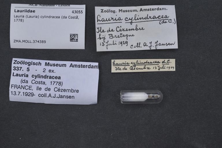 | Keywords: Naturalis Biodiversity Center - ZMA.MOLL.374389 - Lauria (Lauria) cylindracea (Da Costa, 1778) - Lauriidae - Mollusc shell.jpeg artwork Dimensions artwork Document type Lauriidae Lauria Individual count Infraspecific epithet Infraspecific rank Institution Naturalis Kind of unit artwork Kind of unit specimen shell Life stage Medium artwork Nomenclatural code Source institute Rijksmuseum van Natuurlijke Historie Leiden Scale the width of the text on the species/QR-code label is 38 mm Occurrence ID page Other fields Other versions artwork Permission license Naturalis donation CC-0 Mollusca Publication location Scientific name Lauria Lauria cylindracea Da Costa 1778 Scientific name authorship Da Costa 1778 Source url http //bioportal naturalis nl Specific epithet cylindracea State or province Subject keywords artwork Subject keywords publication Title artwork Title publication Type status Uploaded with GWToolset Naturalis_Biodiversity_Center_-_ZMA MOLL 374389_-_Lauria_ Lauria _cylindracea_ Da_Costa _1778 _-_Lauriidae_-_Mollusc_shell http //medialib naturalis nl/file/id/ZMA MOLL 374389/format/large Molluscs at Naturalis from the Zoölogisch Museum Amsterdam Media donated by Naturalis Biodiversity Center Lauria cylindracea Lauria |