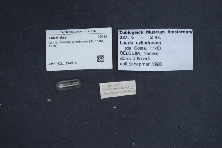 | Keywords: Naturalis Biodiversity Center - ZMA.MOLL.374816 - Lauria (Lauria) cylindracea (Da Costa, 1778) - Lauriidae - Mollusc shell.jpeg artwork Dimensions artwork Document type Lauriidae Lauria Individual count Infraspecific epithet Infraspecific rank Institution Naturalis Kind of unit artwork Kind of unit specimen shell Life stage Medium artwork Nomenclatural code Source institute Rijksmuseum van Natuurlijke Historie Leiden Scale the width of the text on the species/QR-code label is 38 mm Occurrence ID page Other fields Other versions artwork Permission license Naturalis donation CC-0 Mollusca Publication location Scientific name Lauria Lauria cylindracea Da Costa 1778 Scientific name authorship Da Costa 1778 Source url http //bioportal naturalis nl Specific epithet cylindracea State or province Subject keywords artwork Subject keywords publication Title artwork Title publication Type status Uploaded with GWToolset Naturalis_Biodiversity_Center_-_ZMA MOLL 374816_-_Lauria_ Lauria _cylindracea_ Da_Costa _1778 _-_Lauriidae_-_Mollusc_shell http //medialib naturalis nl/file/id/ZMA MOLL 374816/format/large Molluscs at Naturalis from the Zoölogisch Museum Amsterdam Media donated by Naturalis Biodiversity Center Lauria cylindracea Lauria |