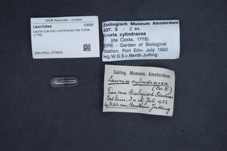 | Keywords: Naturalis Biodiversity Center - ZMA.MOLL.374820 - Lauria (Lauria) cylindracea (Da Costa, 1778) - Lauriidae - Mollusc shell.jpeg artwork Dimensions artwork Document type Lauriidae Lauria Individual count Infraspecific epithet Infraspecific rank Institution Naturalis Kind of unit artwork Kind of unit specimen shell Life stage Medium artwork Nomenclatural code Source institute Rijksmuseum van Natuurlijke Historie Leiden Scale the width of the text on the species/QR-code label is 38 mm Occurrence ID page Other fields Other versions artwork Permission license Naturalis donation CC-0 Mollusca Publication location Scientific name Lauria Lauria cylindracea Da Costa 1778 Scientific name authorship Da Costa 1778 Source url http //bioportal naturalis nl Specific epithet cylindracea State or province Subject keywords artwork Subject keywords publication Title artwork Title publication Type status Uploaded with GWToolset Naturalis_Biodiversity_Center_-_ZMA MOLL 374820_-_Lauria_ Lauria _cylindracea_ Da_Costa _1778 _-_Lauriidae_-_Mollusc_shell http //medialib naturalis nl/file/id/ZMA MOLL 374820/format/large Molluscs at Naturalis from the Zoölogisch Museum Amsterdam Media donated by Naturalis Biodiversity Center Lauria cylindracea Lauria |
