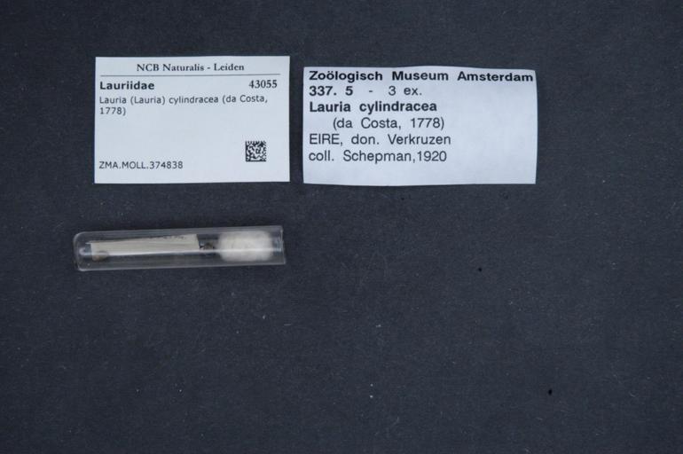 | Keywords: Naturalis Biodiversity Center - ZMA.MOLL.374838 - Lauria (Lauria) cylindracea (Da Costa, 1778) - Lauriidae - Mollusc shell.jpeg artwork Dimensions artwork Document type Lauriidae Lauria Individual count Infraspecific epithet Infraspecific rank Institution Naturalis Kind of unit artwork Kind of unit specimen shell Life stage Medium artwork Nomenclatural code Source institute Rijksmuseum van Natuurlijke Historie Leiden Scale the width of the text on the species/QR-code label is 38 mm Occurrence ID page Other fields Other versions artwork Permission license Naturalis donation CC-0 Mollusca Publication location Scientific name Lauria Lauria cylindracea Da Costa 1778 Scientific name authorship Da Costa 1778 Source url http //bioportal naturalis nl Specific epithet cylindracea State or province Subject keywords artwork Subject keywords publication Title artwork Title publication Type status Uploaded with GWToolset Naturalis_Biodiversity_Center_-_ZMA MOLL 374838_-_Lauria_ Lauria _cylindracea_ Da_Costa _1778 _-_Lauriidae_-_Mollusc_shell http //medialib naturalis nl/file/id/ZMA MOLL 374838/format/large Molluscs at Naturalis from the Zoölogisch Museum Amsterdam Media donated by Naturalis Biodiversity Center Lauria cylindracea Lauria |