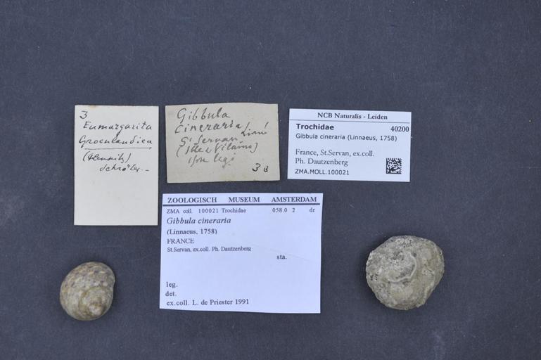| Keywords: Naturalis Biodiversity Center - ZMA.MOLL.100021 - Gibbula cineraria (Linnaeus, 1758) - Trochidae - Mollusc shell.jpeg artwork Dimensions artwork Document type Trochidae subfamily Gibbulinae Gibbula Individual count Infraspecific epithet Infraspecific rank Institution Naturalis Kind of unit artwork Kind of unit specimen shell Life stage France St Servan ex coll Ph Dautzenberg Medium artwork Nomenclatural code coll Scale the width of the text on the species/QR-code label is 38 mm Occurrence ID page Other fields Other versions artwork Permission license Naturalis donation CC-0 Mollusca Publication location Scientific name Gibbula cineraria Linnaeus 1758 Scientific name authorship Linnaeus 1758 Source url http //bioportal naturalis nl Specific epithet cineraria State or province Ille-et-Vilaine Subject keywords artwork Subject keywords publication Title artwork Title publication Type status Uploaded with GWToolset Naturalis_Biodiversity_Center_-_ZMA MOLL 100021_-_Gibbula_cineraria_ Linnaeus _1758 _-_Trochidae_-_Mollusc_shell http //medialib naturalis nl/file/id/ZMA MOLL 100021/format/large Media donated by Naturalis Biodiversity Center Molluscs at Naturalis from the Zoölogisch Museum Amsterdam Gibbula cineraria Gibbula |