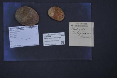 | Keywords: Naturalis Biodiversity Center - ZMA.MOLL.225511.2 - Haliotis rubiginosa Reeve, 1846 - Haliotidae - Mollusc shell.jpeg artwork Dimensions artwork Document type Haliotidae Haliotis Individual count Infraspecific epithet Infraspecific rank Institution Naturalis Kind of unit artwork Kind of unit specimen shell Life stage Indonesia Bali Westcoast Medium artwork Nomenclatural code Moll Scale the width of the text on the species/QR-code label is 38 mm Occurrence ID page Other fields Other versions artwork Permission license Naturalis donation CC-0 Publication location Scientific name Haliotis rubiginosa Reeve 1846 Scientific name authorship Source url http //bioportal naturalis nl Specific epithet rubiginosa State or province Bali Subject keywords artwork Subject keywords publication Title artwork Title publication Type status Uploaded with GWToolset Naturalis_Biodiversity_Center_-_ZMA MOLL 225511 2_-_Haliotis_rubiginosa_Reeve _1846_-_Haliotidae_-_Mollusc_shell http //medialib naturalis nl/file/id/ZMA MOLL 225511 2/format/large Media donated by Naturalis Biodiversity Center Molluscs at Naturalis from the Zoölogisch Museum Amsterdam Haliotis rubiginosa Haliotis |