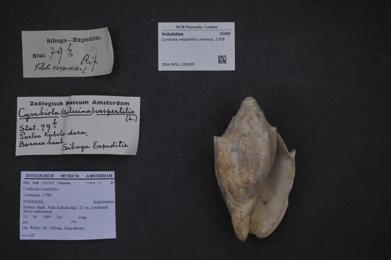 Keywords: Naturalis Biodiversity Center - ZMA.MOLL.226295 - Cymbiola vespertilio Linnaeus, 1758 - Volutidae - Mollusc shell.jpeg artwork Dimensions artwork Document type Volutidae Cymbiola Individual count Infraspecific epithet Infraspecific rank Institution Naturalis Kind of unit artwork Kind of unit specimen shell Life stage Medium artwork Nomenclatural code Scale the width of the text on the species/QR-code label is 38 mm Occurrence ID page Neogastropoda Other fields Other versions artwork Permission license Naturalis donation CC-0 Mollusca Publication location Scientific name Cymbiola vespertilio Linnaeus 1758 Scientific name authorship Linnaeus 1758 Source url http //bioportal naturalis nl Specific epithet vespertilio State or province Subject keywords artwork Subject keywords publication Title artwork Title publication Type status Uploaded with GWToolset Naturalis_Biodiversity_Center_-_ZMA MOLL 226295_-_Cymbiola_vespertilio_Linnaeus _1758_-_Volutidae_-_Mollusc_shell http //medialib naturalis nl/file/id/ZMA MOLL 226295/format/large Media donated by Naturalis Biodiversity Center Molluscs at Naturalis from the Zoölogisch Museum Amsterdam Cymbiola vespertilio Cymbiola |