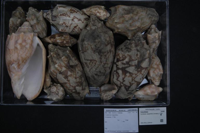 Keywords: Naturalis Biodiversity Center - ZMA.MOLL.226419 - Cymbiola vespertilio Linnaeus, 1758 - Volutidae - Mollusc shell.jpeg artwork Dimensions artwork Document type Volutidae Cymbiola Individual count Infraspecific epithet Infraspecific rank Institution Naturalis Kind of unit artwork Kind of unit specimen shell Life stage Medium artwork Nomenclatural code Scale the width of the text on the species/QR-code label is 38 mm Occurrence ID page Neogastropoda Other fields Other versions artwork Permission license Naturalis donation CC-0 Mollusca Publication location Scientific name Cymbiola vespertilio Linnaeus 1758 Scientific name authorship Linnaeus 1758 Source url http //bioportal naturalis nl Specific epithet vespertilio State or province Subject keywords artwork Subject keywords publication Title artwork Title publication Type status Uploaded with GWToolset Naturalis_Biodiversity_Center_-_ZMA MOLL 226419_-_Cymbiola_vespertilio_Linnaeus _1758_-_Volutidae_-_Mollusc_shell http //medialib naturalis nl/file/id/ZMA MOLL 226419/format/large Media donated by Naturalis Biodiversity Center Molluscs at Naturalis from the Zoölogisch Museum Amsterdam Cymbiola vespertilio Cymbiola |