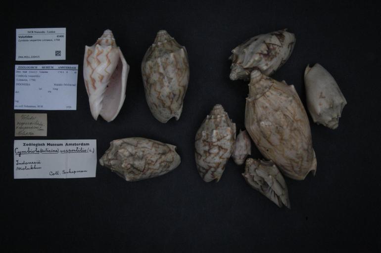 Keywords: Naturalis Biodiversity Center - ZMA.MOLL.226415 - Cymbiola vespertilio Linnaeus, 1758 - Volutidae - Mollusc shell.jpeg artwork Dimensions artwork Document type Volutidae Cymbiola Individual count Infraspecific epithet Infraspecific rank Institution Naturalis Kind of unit artwork Kind of unit specimen shell Life stage Medium artwork Nomenclatural code Scale the width of the text on the species/QR-code label is 38 mm Occurrence ID page Neogastropoda Other fields Other versions artwork Permission license Naturalis donation CC-0 Mollusca Publication location Scientific name Cymbiola vespertilio Linnaeus 1758 Scientific name authorship Linnaeus 1758 Source url http //bioportal naturalis nl Specific epithet vespertilio State or province Subject keywords artwork Subject keywords publication Title artwork Title publication Type status Uploaded with GWToolset Naturalis_Biodiversity_Center_-_ZMA MOLL 226415_-_Cymbiola_vespertilio_Linnaeus _1758_-_Volutidae_-_Mollusc_shell http //medialib naturalis nl/file/id/ZMA MOLL 226415/format/large Media donated by Naturalis Biodiversity Center Molluscs at Naturalis from the Zoölogisch Museum Amsterdam Cymbiola vespertilio Cymbiola |