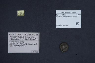 | Keywords: Naturalis Biodiversity Center - ZMA.MOLL.394883 - Triodopsis tridentata (Say, 1816) - Polygyridae - Mollusc shell.jpeg artwork Dimensions artwork Document type Polygyridae subfamily Triodopsinae Triodopsis Individual count Infraspecific epithet Infraspecific rank Institution Naturalis Kind of unit artwork Kind of unit specimen shell Life stage Medium artwork Nomenclatural code Source institute Rijksmuseum van Natuurlijke Historie Leiden Scale the width of the text on the species/QR-code label is 38 mm Occurrence ID page Other fields Other versions artwork Permission license Naturalis donation CC-0 Mollusca Publication location Scientific name Triodopsis tridentata Say 1816 Scientific name authorship Say 1816 Source url http //bioportal naturalis nl Specific epithet tridentata State or province Subject keywords artwork Subject keywords publication Title artwork Title publication Type status Uploaded with GWToolset Naturalis_Biodiversity_Center_-_ZMA MOLL 394883_-_Triodopsis_tridentata_ Say _1816 _-_Polygyridae_-_Mollusc_shell http //medialib naturalis nl/file/id/ZMA MOLL 394883/format/large Molluscs at Naturalis from the Zoölogisch Museum Amsterdam Media donated by Naturalis Biodiversity Center Triodopsis tridentata Triodopsis |