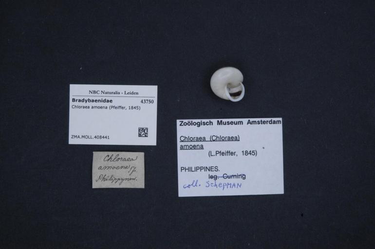 | Keywords: Naturalis Biodiversity Center - ZMA.MOLL.408441 - Chloraea amoena (Pfeiffer, 1845) - Bradybaenidae - Mollusc shell.jpeg artwork Dimensions artwork Document type Bradybaenidae Chloraea Individual count Infraspecific epithet Infraspecific rank Institution Naturalis Kind of unit artwork Kind of unit specimen shell Life stage Medium artwork Nomenclatural code Source institute Zoölogisch Museum Amsterdam Scale the width of the text on the species/QR-code label is 38 mm Occurrence ID page Other fields Other versions artwork Permission license Naturalis donation CC-0 Mollusca Publication location Scientific name Chloraea amoena Pfeiffer 1845 Scientific name authorship Pfeiffer 1845 Source url http //bioportal naturalis nl Specific epithet amoena State or province Subject keywords artwork Subject keywords publication Title artwork Title publication Type status Uploaded with GWToolset Naturalis_Biodiversity_Center_-_ZMA MOLL 408441_-_Chloraea_amoena_ Pfeiffer _1845 _-_Bradybaenidae_-_Mollusc_shell http //medialib naturalis nl/file/id/ZMA MOLL 408441/format/large Molluscs at Naturalis from the Zoölogisch Museum Amsterdam Media donated by Naturalis Biodiversity Center Chloraea amoena Chloraea |