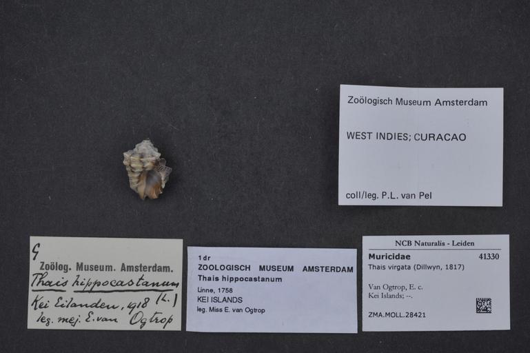 | Keywords: Naturalis Biodiversity Center - ZMA.MOLL.28421 1 - Thais virgata (Dillwyn, 1817) - Muricidae - Mollusc shell.jpeg artwork Dimensions artwork Document type Muricidae subfamily Rapaninae Thais Individual count Infraspecific epithet Infraspecific rank Institution Naturalis Kind of unit artwork Kind of unit specimen shell Life stage Kei Islands Medium artwork Nomenclatural code Scale the width of the text on the species/QR-code label is 38 mm Occurrence ID page Neogastropoda Other fields Other versions artwork Permission license Naturalis donation CC-0 Mollusca Publication location Scientific name Thais virgata Dillwyn 1817 Scientific name authorship Dillwyn 1817 Source url http //bioportal naturalis nl Specific epithet virgata State or province Kei Islands Subject keywords artwork Subject keywords publication Title artwork Title publication Type status Uploaded with GWToolset Naturalis_Biodiversity_Center_-_ZMA MOLL 28421_1_-_Thais_virgata_ Dillwyn _1817 _-_Muricidae_-_Mollusc_shell http //medialib naturalis nl/file/id/ZMA MOLL 28421_1/format/large Media donated by Naturalis Biodiversity Center Molluscs at Naturalis from the Zoölogisch Museum Amsterdam Thais virgata |