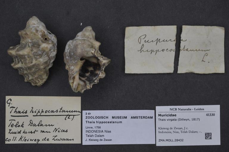 | Keywords: Naturalis Biodiversity Center - ZMA.MOLL.28432 - Thais virgata (Dillwyn, 1817) - Muricidae - Mollusc shell.jpeg artwork Dimensions artwork Document type Muricidae subfamily Rapaninae Thais Individual count Infraspecific epithet Infraspecific rank Institution Naturalis Kind of unit artwork Kind of unit specimen shell Life stage Indonesia Nias Telah Dalam Medium artwork Nomenclatural code Scale the width of the text on the species/QR-code label is 38 mm Occurrence ID page Neogastropoda Other fields Other versions artwork Permission license Naturalis donation CC-0 Mollusca Publication location Scientific name Thais virgata Dillwyn 1817 Scientific name authorship Dillwyn 1817 Source url http //bioportal naturalis nl Specific epithet virgata State or province Nias Subject keywords artwork Subject keywords publication Title artwork Title publication Type status Uploaded with GWToolset Naturalis_Biodiversity_Center_-_ZMA MOLL 28432_-_Thais_virgata_ Dillwyn _1817 _-_Muricidae_-_Mollusc_shell http //medialib naturalis nl/file/id/ZMA MOLL 28432/format/large Media donated by Naturalis Biodiversity Center Molluscs at Naturalis from the Zoölogisch Museum Amsterdam Thais virgata |