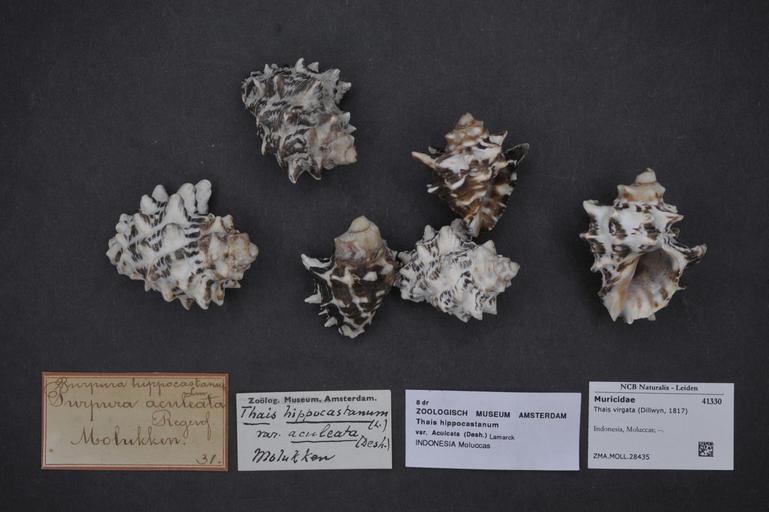 | Keywords: Naturalis Biodiversity Center - ZMA.MOLL.28435 - Thais virgata (Dillwyn, 1817) - Muricidae - Mollusc shell.jpeg artwork Dimensions artwork Document type Muricidae subfamily Rapaninae Thais Individual count Infraspecific epithet Infraspecific rank Institution Naturalis Kind of unit artwork Kind of unit specimen shell Life stage Indonesia Moluccas Medium artwork Nomenclatural code Scale the width of the text on the species/QR-code label is 38 mm Occurrence ID page Neogastropoda Other fields Other versions artwork Permission license Naturalis donation CC-0 Mollusca Publication location Scientific name Thais virgata Dillwyn 1817 Scientific name authorship Dillwyn 1817 Source url http //bioportal naturalis nl Specific epithet virgata State or province Moluccas Subject keywords artwork Subject keywords publication Title artwork Title publication Type status Uploaded with GWToolset Naturalis_Biodiversity_Center_-_ZMA MOLL 28435_-_Thais_virgata_ Dillwyn _1817 _-_Muricidae_-_Mollusc_shell http //medialib naturalis nl/file/id/ZMA MOLL 28435/format/large Media donated by Naturalis Biodiversity Center Molluscs at Naturalis from the Zoölogisch Museum Amsterdam Thais virgata |