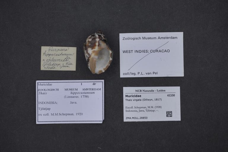 | Keywords: Naturalis Biodiversity Center - ZMA.MOLL.28850 - Thais virgata (Dillwyn, 1817) - Muricidae - Mollusc shell.jpeg artwork Dimensions artwork Document type Muricidae subfamily Rapaninae Thais Individual count Infraspecific epithet Infraspecific rank Institution Naturalis Kind of unit artwork Kind of unit specimen shell Life stage Indonesia; Jawa Tjilatjap Medium artwork Nomenclatural code Scale the width of the text on the species/QR-code label is 38 mm Occurrence ID page Neogastropoda Other fields Other versions artwork Permission license Naturalis donation CC-0 Mollusca Publication location Scientific name Thais virgata Dillwyn 1817 Scientific name authorship Dillwyn 1817 Source url http //bioportal naturalis nl Specific epithet virgata State or province Jawa Subject keywords artwork Subject keywords publication Title artwork Title publication Type status Uploaded with GWToolset Naturalis_Biodiversity_Center_-_ZMA MOLL 28850_-_Thais_virgata_ Dillwyn _1817 _-_Muricidae_-_Mollusc_shell http //medialib naturalis nl/file/id/ZMA MOLL 28850/format/large Media donated by Naturalis Biodiversity Center Molluscs at Naturalis from the Zoölogisch Museum Amsterdam Thais virgata |