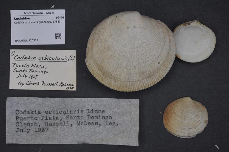 Keywords: Naturalis Biodiversity Center - ZMA.MOLL.420307 - Codakia orbicularis (Linnaeus, 1758) - Lucinidae - Mollusc shell.jpeg artwork Dimensions artwork Document type Lucinidae subfamily Lucininae Codakia Individual count Infraspecific epithet Infraspecific rank Institution Naturalis Kind of unit artwork Kind of unit specimen shell Life stage Medium artwork Nomenclatural code Source institute Zoölogisch Museum Amsterdam Scale the width of the text on the species/QR-code label is 38 mm Occurrence ID page Other fields Other versions artwork Permission license Naturalis donation CC-0 Mollusca Publication location Scientific name Codakia orbicularis Linnaeus 1758 Scientific name authorship Linnaeus 1758 Source url http //bioportal naturalis nl Specific epithet orbicularis State or province Subject keywords artwork Subject keywords publication Title artwork Title publication Type status Uploaded with GWToolset Naturalis_Biodiversity_Center_-_ZMA MOLL 420307_-_Codakia_orbicularis_ Linnaeus _1758 _-_Lucinidae_-_Mollusc_shell http //medialib naturalis nl/file/id/ZMA MOLL 420307/format/large Molluscs at Naturalis from the Zoölogisch Museum Amsterdam Media donated by Naturalis Biodiversity Center Codakia orbicularis Codakia |