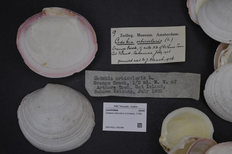 Keywords: Naturalis Biodiversity Center - ZMA.MOLL.420348 - Codakia orbicularis (Linnaeus, 1758) - Lucinidae - Mollusc shell.jpeg artwork Dimensions artwork Document type Lucinidae subfamily Lucininae Codakia Individual count Infraspecific epithet Infraspecific rank Institution Naturalis Kind of unit artwork Kind of unit specimen shell Life stage Medium artwork Nomenclatural code Source institute Zoölogisch Museum Amsterdam Scale the width of the text on the species/QR-code label is 38 mm Occurrence ID page Other fields Other versions artwork Permission license Naturalis donation CC-0 Mollusca Publication location Scientific name Codakia orbicularis Linnaeus 1758 Scientific name authorship Linnaeus 1758 Source url http //bioportal naturalis nl Specific epithet orbicularis State or province Subject keywords artwork Subject keywords publication Title artwork Title publication Type status Uploaded with GWToolset Naturalis_Biodiversity_Center_-_ZMA MOLL 420348_-_Codakia_orbicularis_ Linnaeus _1758 _-_Lucinidae_-_Mollusc_shell http //medialib naturalis nl/file/id/ZMA MOLL 420348/format/large Molluscs at Naturalis from the Zoölogisch Museum Amsterdam Media donated by Naturalis Biodiversity Center Codakia orbicularis Codakia |