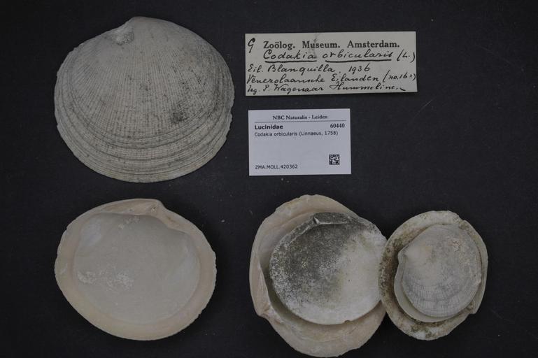 Keywords: Naturalis Biodiversity Center - ZMA.MOLL.420362 - Codakia orbicularis (Linnaeus, 1758) - Lucinidae - Mollusc shell.jpeg artwork Dimensions artwork Document type Lucinidae subfamily Lucininae Codakia Individual count Infraspecific epithet Infraspecific rank Institution Naturalis Kind of unit artwork Kind of unit specimen shell Life stage Medium artwork Nomenclatural code Source institute Zoölogisch Museum Amsterdam Scale the width of the text on the species/QR-code label is 38 mm Occurrence ID page Other fields Other versions artwork Permission license Naturalis donation CC-0 Mollusca Publication location Scientific name Codakia orbicularis Linnaeus 1758 Scientific name authorship Linnaeus 1758 Source url http //bioportal naturalis nl Specific epithet orbicularis State or province Subject keywords artwork Subject keywords publication Title artwork Title publication Type status Uploaded with GWToolset Naturalis_Biodiversity_Center_-_ZMA MOLL 420362_-_Codakia_orbicularis_ Linnaeus _1758 _-_Lucinidae_-_Mollusc_shell http //medialib naturalis nl/file/id/ZMA MOLL 420362/format/large Molluscs at Naturalis from the Zoölogisch Museum Amsterdam Media donated by Naturalis Biodiversity Center Codakia orbicularis Codakia |
