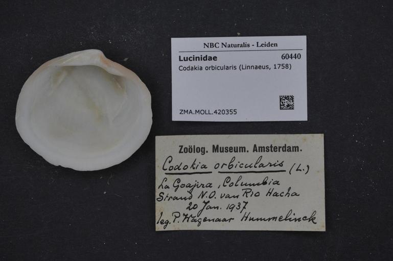 Keywords: Naturalis Biodiversity Center - ZMA.MOLL.420355 - Codakia orbicularis (Linnaeus, 1758) - Lucinidae - Mollusc shell.jpeg artwork Dimensions artwork Document type Lucinidae subfamily Lucininae Codakia Individual count Infraspecific epithet Infraspecific rank Institution Naturalis Kind of unit artwork Kind of unit specimen shell Life stage Medium artwork Nomenclatural code Source institute Zoölogisch Museum Amsterdam Scale the width of the text on the species/QR-code label is 38 mm Occurrence ID page Other fields Other versions artwork Permission license Naturalis donation CC-0 Mollusca Publication location Scientific name Codakia orbicularis Linnaeus 1758 Scientific name authorship Linnaeus 1758 Source url http //bioportal naturalis nl Specific epithet orbicularis State or province Subject keywords artwork Subject keywords publication Title artwork Title publication Type status Uploaded with GWToolset Naturalis_Biodiversity_Center_-_ZMA MOLL 420355_-_Codakia_orbicularis_ Linnaeus _1758 _-_Lucinidae_-_Mollusc_shell http //medialib naturalis nl/file/id/ZMA MOLL 420355/format/large Molluscs at Naturalis from the Zoölogisch Museum Amsterdam Media donated by Naturalis Biodiversity Center Codakia orbicularis Codakia |