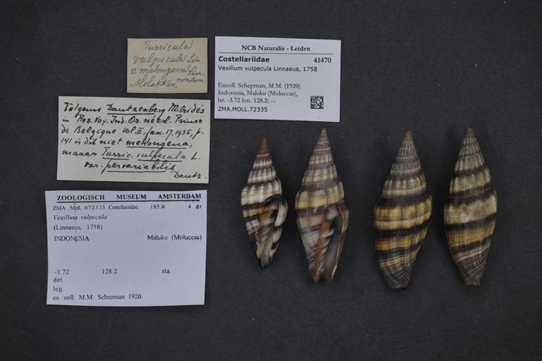 Keywords: Naturalis Biodiversity Center - ZMA.MOLL.72335 - Vexillum vulpecula (Linnaeus, 1758) - Costellariidae - Mollusc shell.jpeg artwork Dimensions artwork Document type Costellariidae Vexillum Individual count Infraspecific epithet Infraspecific rank Institution Naturalis Kind of unit artwork Kind of unit specimen shell Life stage Indonesia Maluku Moluccas lat -3 72 lon 128 2 Medium artwork Nomenclatural code Collection remarks Moll Source institute Zoölogisch Museum Amsterdam Scale the width of the text on the species/QR-code label is 38 mm Occurrence ID page Neogastropoda Other fields Other versions artwork Permission license Naturalis donation CC-0 Mollusca Publication location Scientific name Vexillum vulpecula Linnaeus 1758 Scientific name authorship Linnaeus 1758 Source url http //bioportal naturalis nl Specific epithet vulpecula State or province Maluku Moluccas Subject keywords artwork Subject keywords publication Title artwork Title publication Type status Uploaded with GWToolset Naturalis_Biodiversity_Center_-_ZMA MOLL 72335_-_Vexillum_vulpecula_ Linnaeus _1758 _-_Costellariidae_-_Mollusc_shell http //medialib naturalis nl/file/id/ZMA MOLL 72335/format/large Molluscs at Naturalis from the Zoölogisch Museum Amsterdam Media donated by Naturalis Biodiversity Center Vexillum vulpecula Vexillum