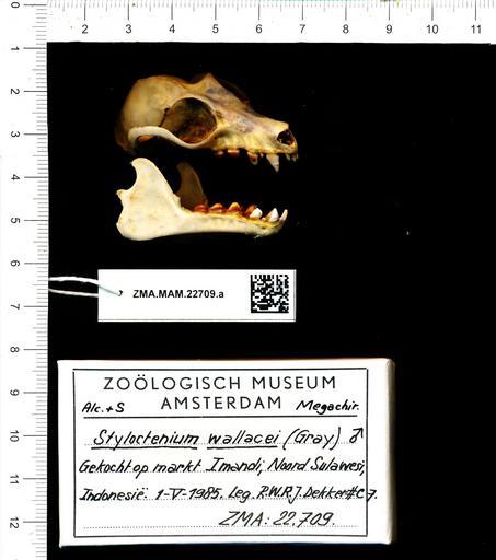 Keywords: Naturalis Biodiversity Center - ZMA.MAM.22709.a lat - Styloctenium wallacei - skull.jpeg artwork Dimensions artwork Document type Styloctenium Individual count Infraspecific epithet Infraspecific rank Institution Naturalis Kind of unit artwork Kind of unit specimen skull Life stage Gekocht op markt te Imandi Noord-Sulawesi Indonesia Medium artwork Nomenclatural code Occurrence ID page Other fields Other versions artwork Permission license Naturalis donation CC-0 Publication location Scientific name Styloctenium wallacei Scientific name authorship female Source url http //bioportal naturalis nl Specific epithet wallacei State or province Subject keywords artwork Subject keywords publication Title artwork Title publication Type status Uploaded with GWToolset Naturalis_Biodiversity_Center_-_ZMA MAM 22709 a_lat_-_Styloctenium_wallacei_-_skull http //medialib naturalis nl/file/id/ZMA MAM 22709 a_lat/format/large Mammals at Naturalis from the Zoölogisch Museum Amsterdam Media donated by Naturalis Biodiversity Center Styloctenium wallacei Styloctenium |