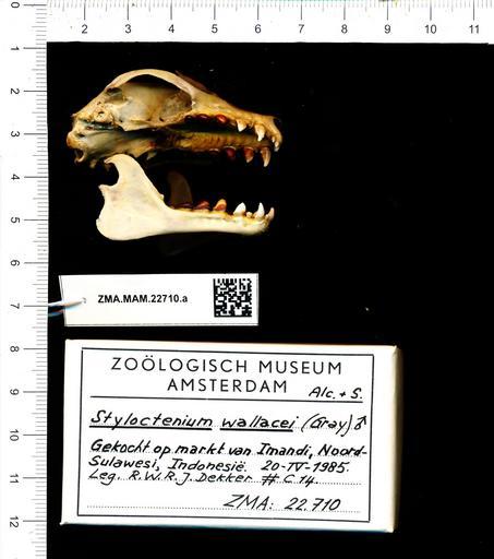 Keywords: Naturalis Biodiversity Center - ZMA.MAM.22710.a lat - Styloctenium wallacei - skull.jpeg artwork Dimensions artwork Document type Styloctenium Individual count Infraspecific epithet Infraspecific rank Institution Naturalis Kind of unit artwork Kind of unit specimen skull Life stage Gekocht op markt te Imandi Noord-Sulawesi Indonesia Medium artwork Nomenclatural code Occurrence ID page Other fields Other versions artwork Permission license Naturalis donation CC-0 Publication location Scientific name Styloctenium wallacei Scientific name authorship male Source url http //bioportal naturalis nl Specific epithet wallacei State or province Subject keywords artwork Subject keywords publication Title artwork Title publication Type status Uploaded with GWToolset Naturalis_Biodiversity_Center_-_ZMA MAM 22710 a_lat_-_Styloctenium_wallacei_-_skull http //medialib naturalis nl/file/id/ZMA MAM 22710 a_lat/format/large Mammals at Naturalis from the Zoölogisch Museum Amsterdam Media donated by Naturalis Biodiversity Center Styloctenium wallacei Styloctenium |