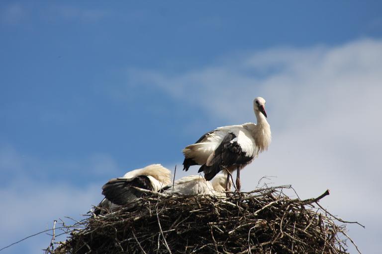 Keywords: nature birds stork storchennest animals spring adebar bill sky blue rattle stork nest