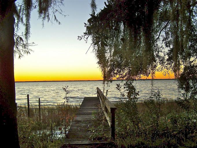 Keywords: nature landscape sunset lake tree scenery sky old pier